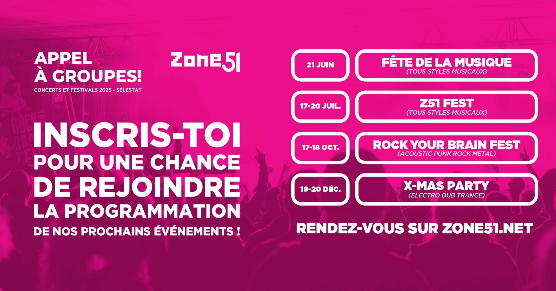 Zone51 lance un appel pour permettre à des projets musicaux régionaux d’intégrer la programmation de ses événements 2025 :